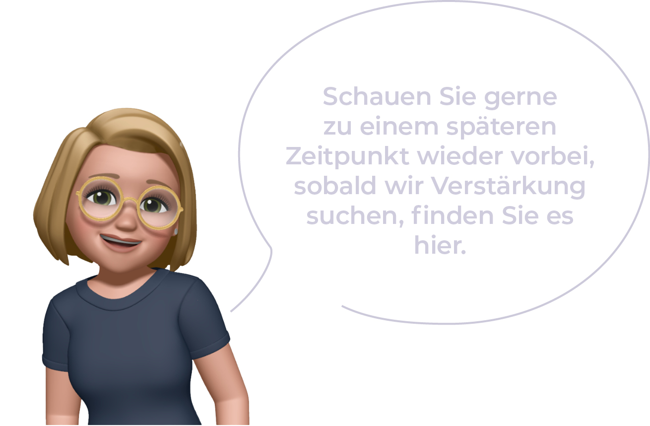 Unser Team ist derzeit komplett - Schauen Sie gerne zu einem späteren Zeitpunkt wieder vorbei, sobald wir Verstärkung suchen, finden Sie es hier.